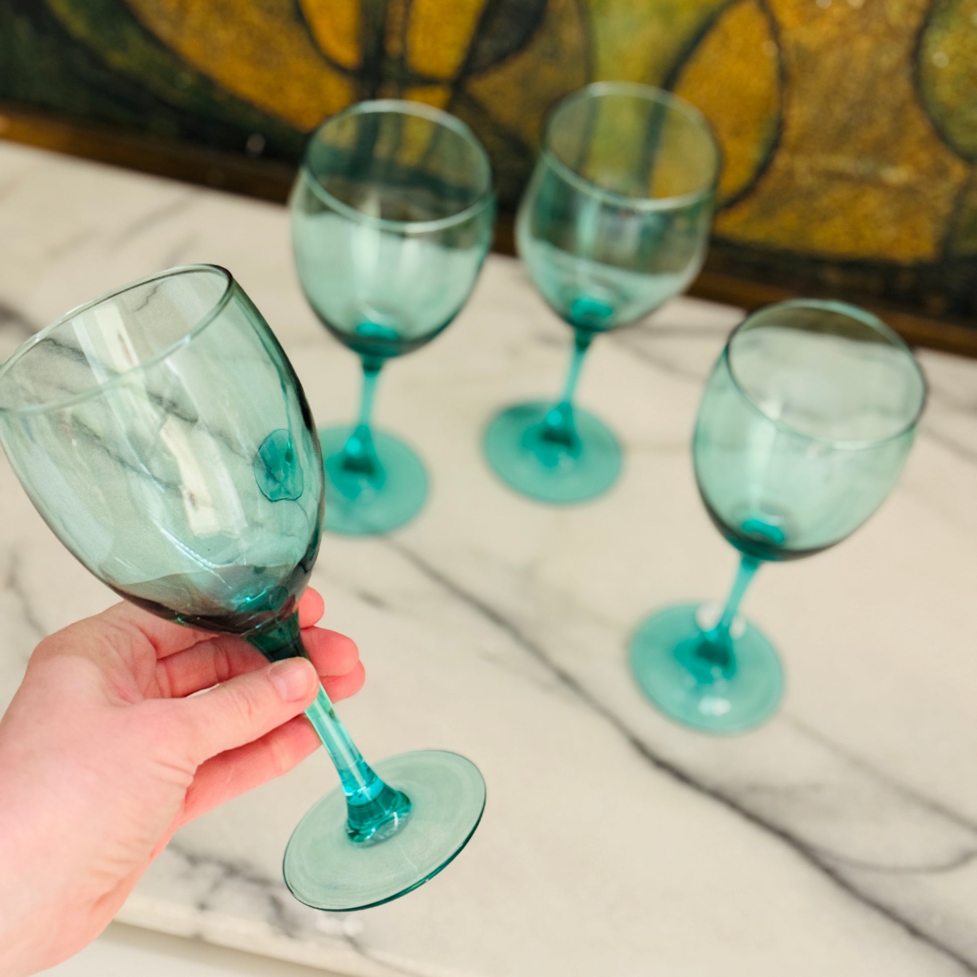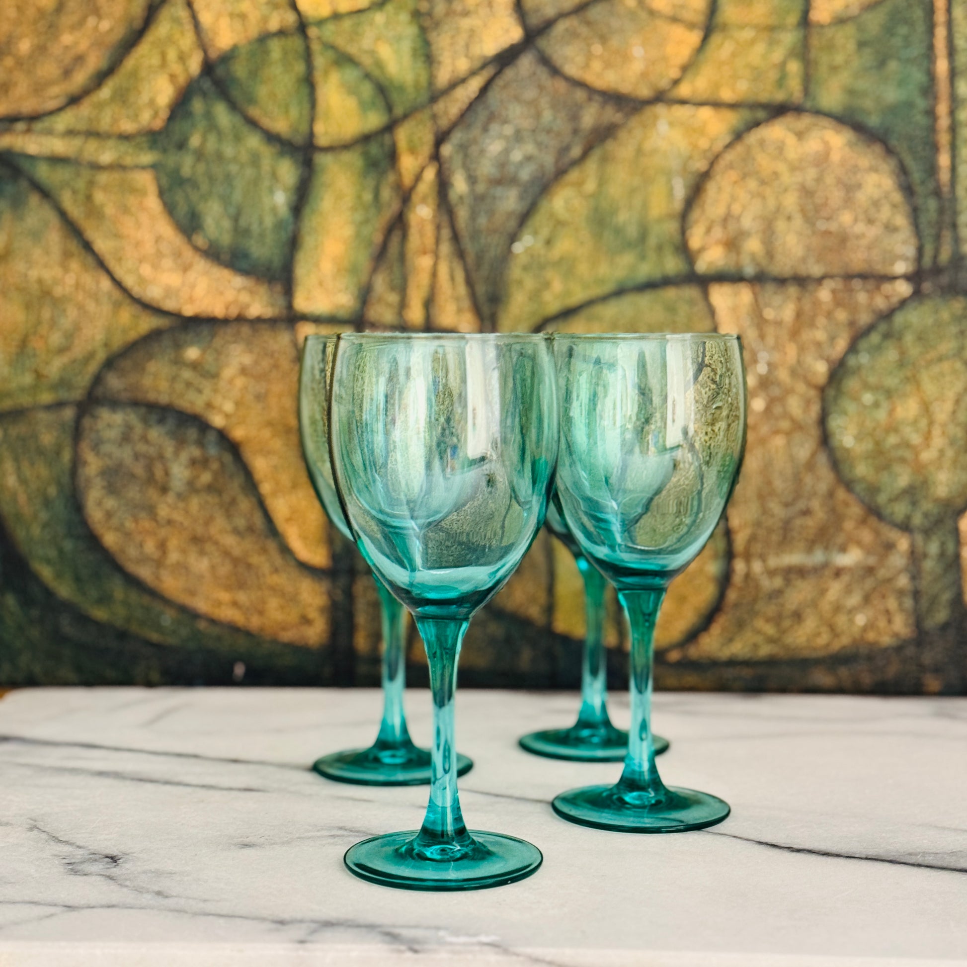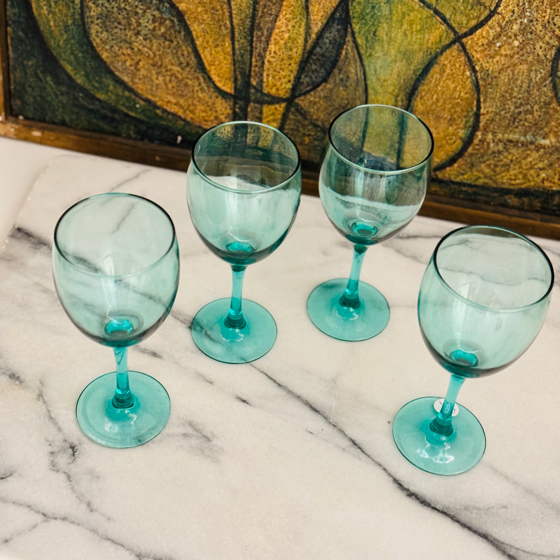 Set van 4 wijnglazen in een petroleumkleurig glas.