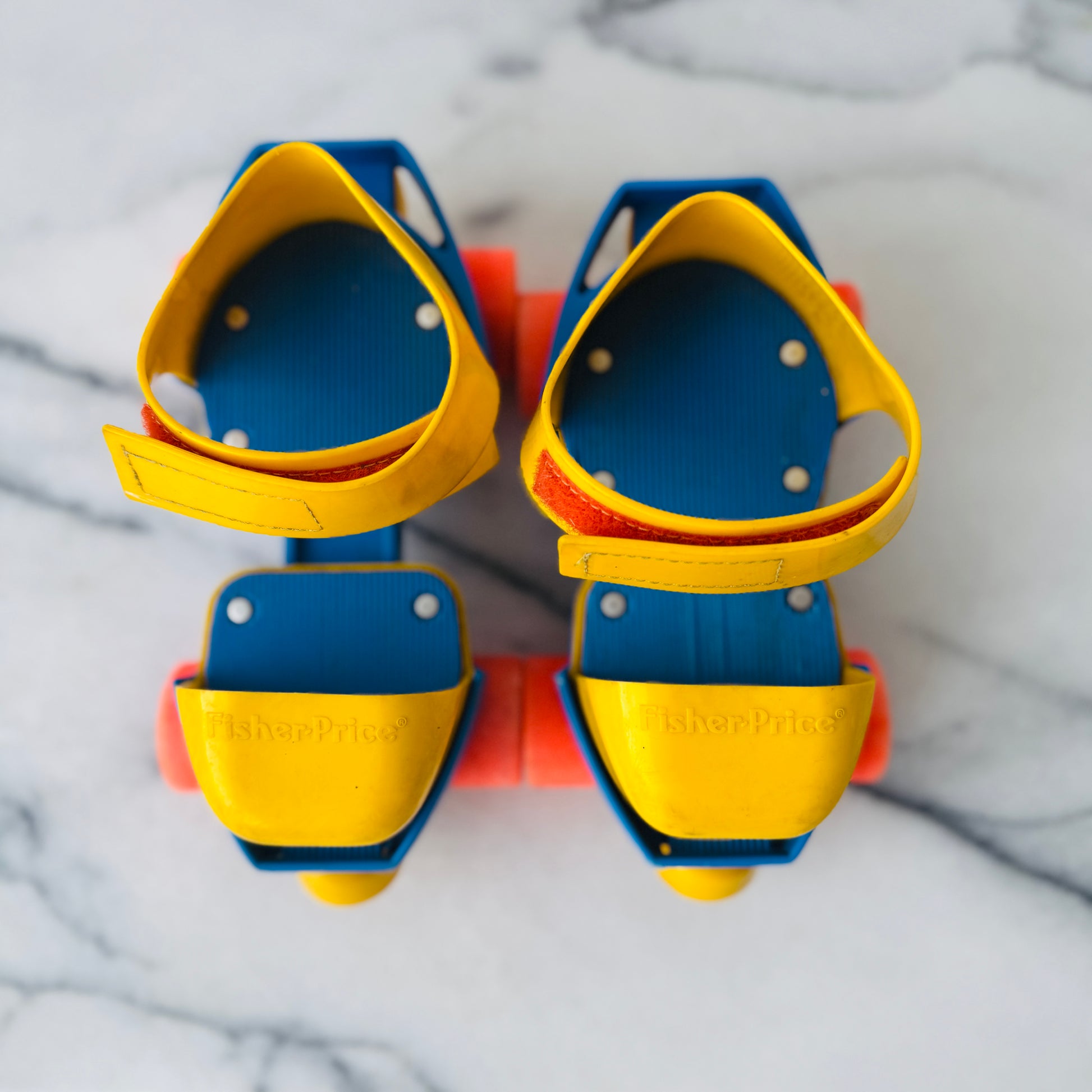 Recht uit de 80’s, deze ‘Grow with me’ rolschaatsen van Fisher Price. Ze zijn lange tijd te gebruiken door de verstelbare basis. Te gebruiken door kinderen van 1 tot 4 jaar.