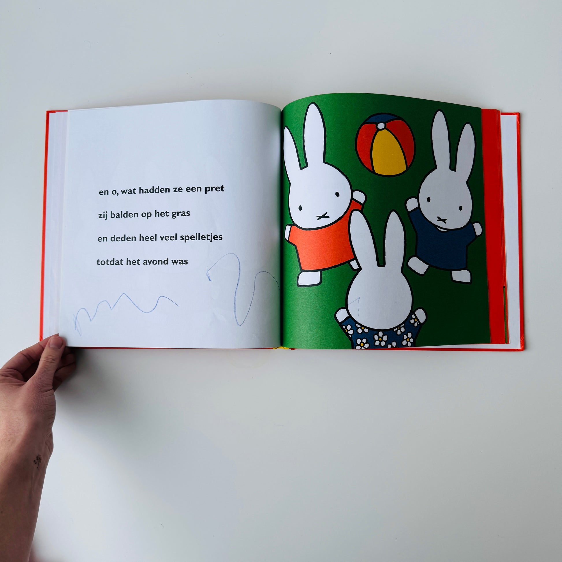 Een klassieker, voorleesboekje van onze kleurrijke vriend Nijntje. Let wel: er werd met balpen in het boekje gekleurd.