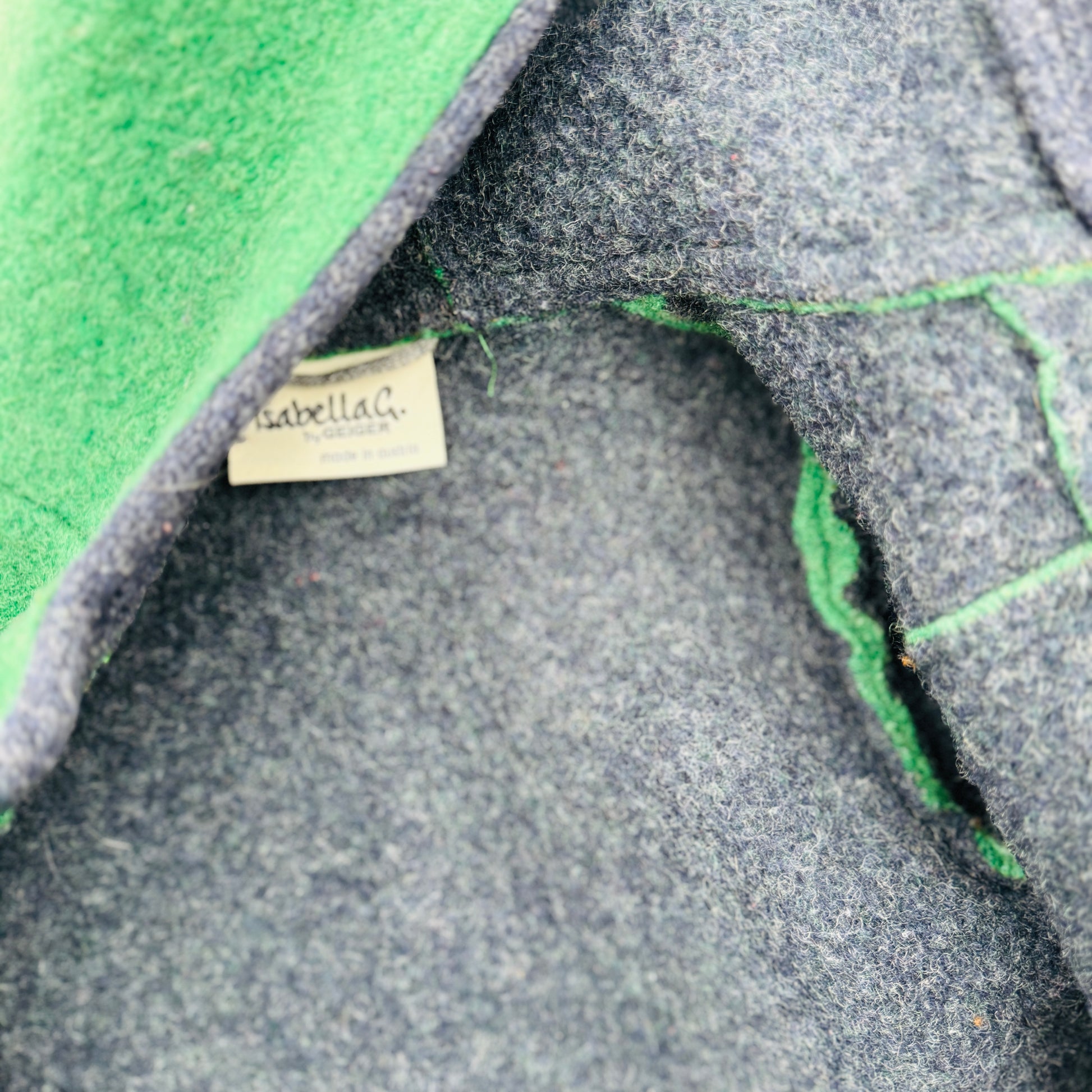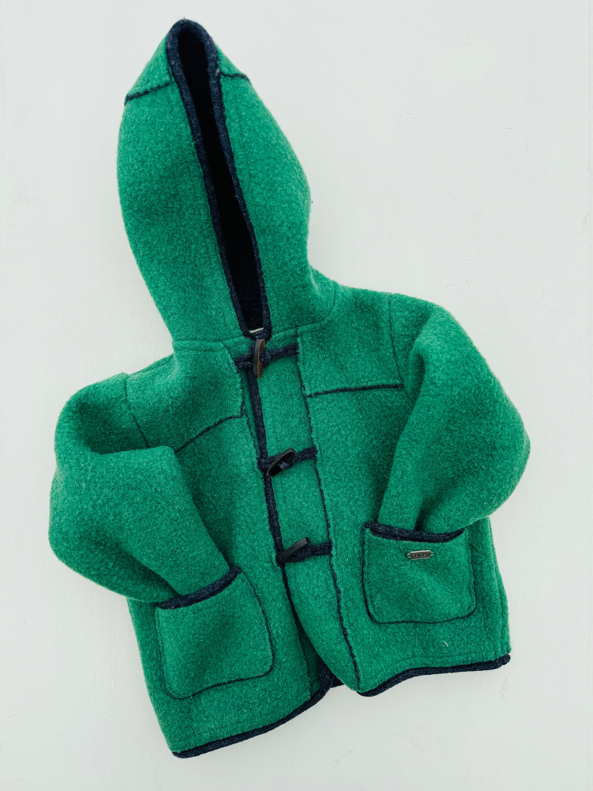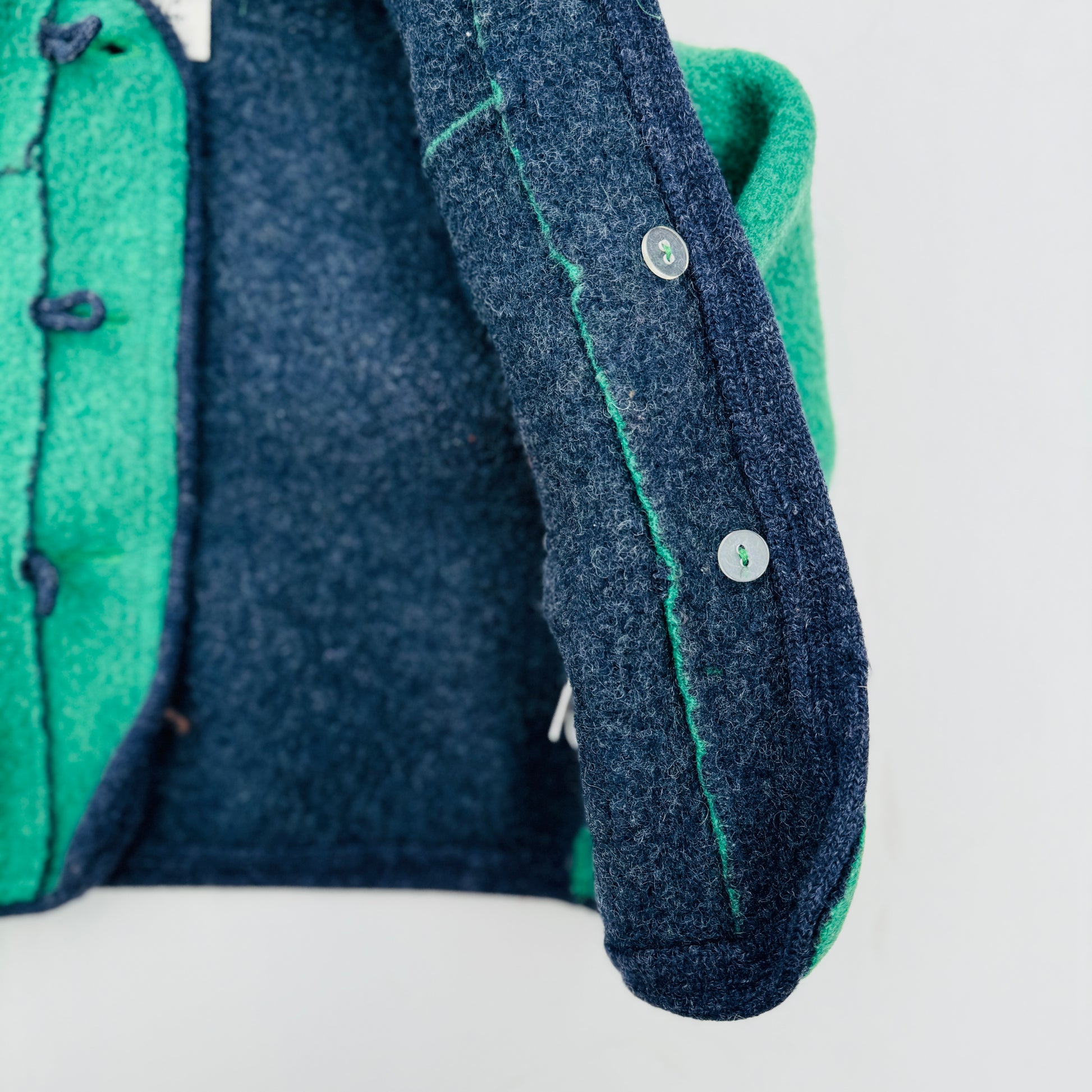 Groen aan de buitenzijde en donkerblauw aan de binnenzijde.