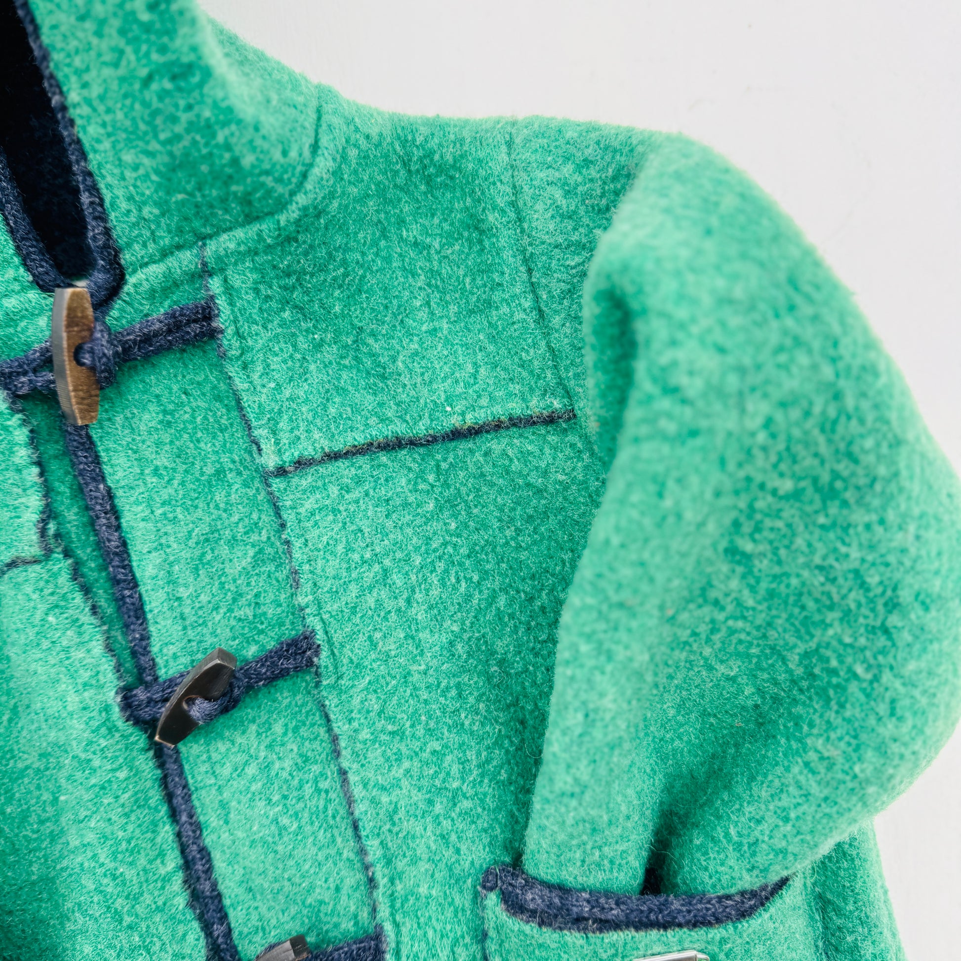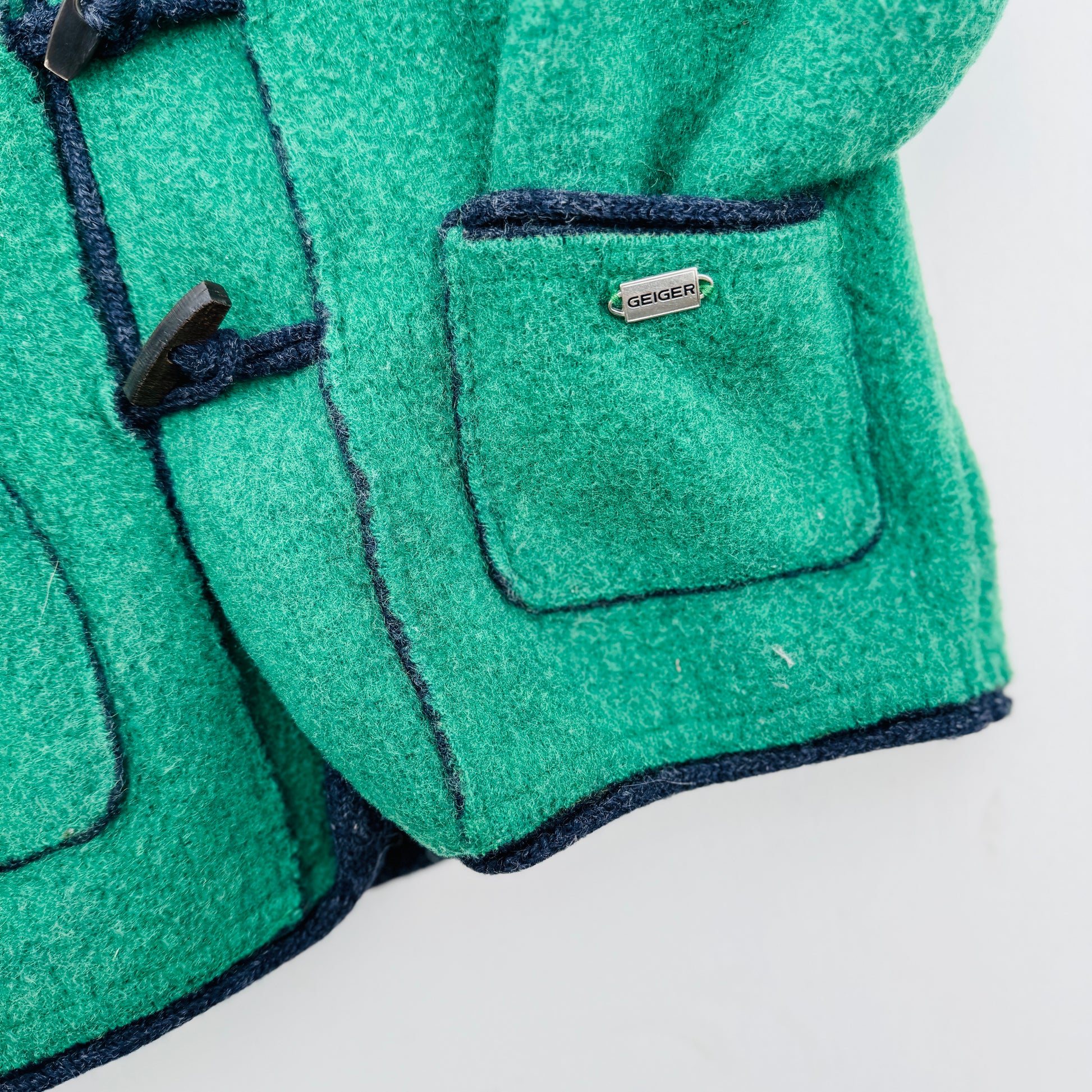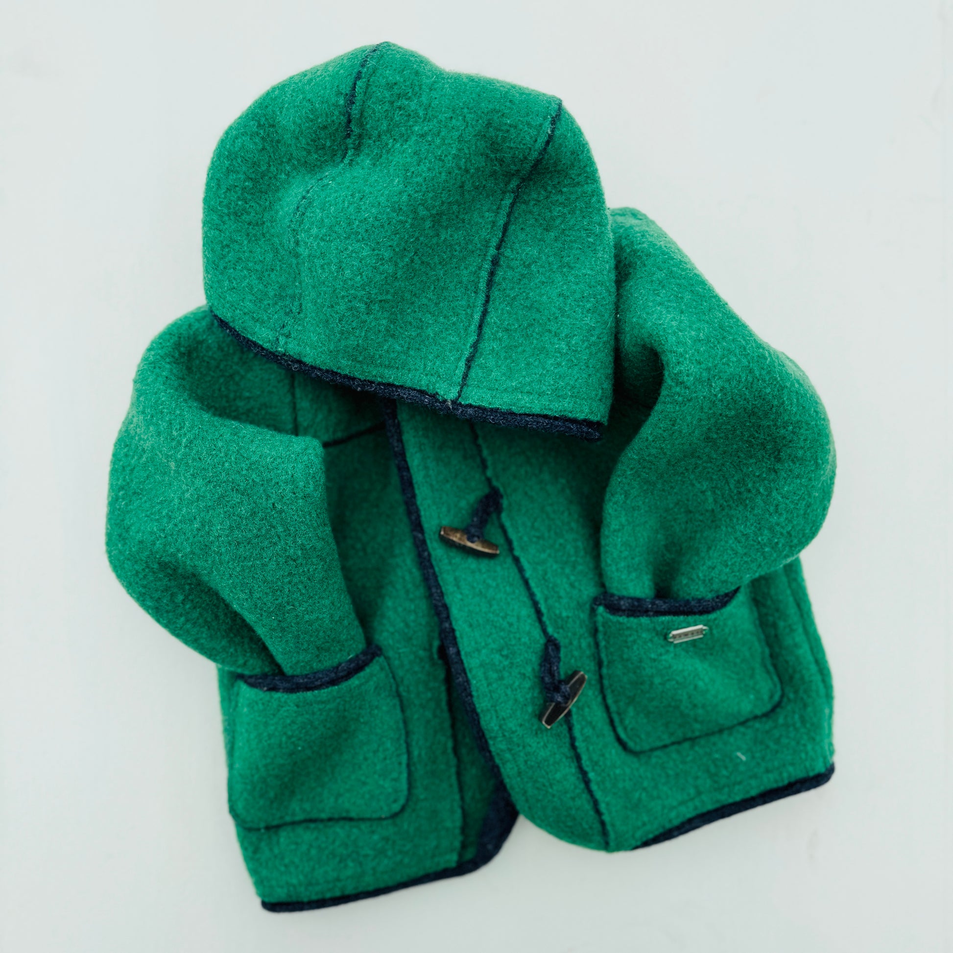 Groen aan de buitenzijde en donkerblauw aan de binnenzijde.