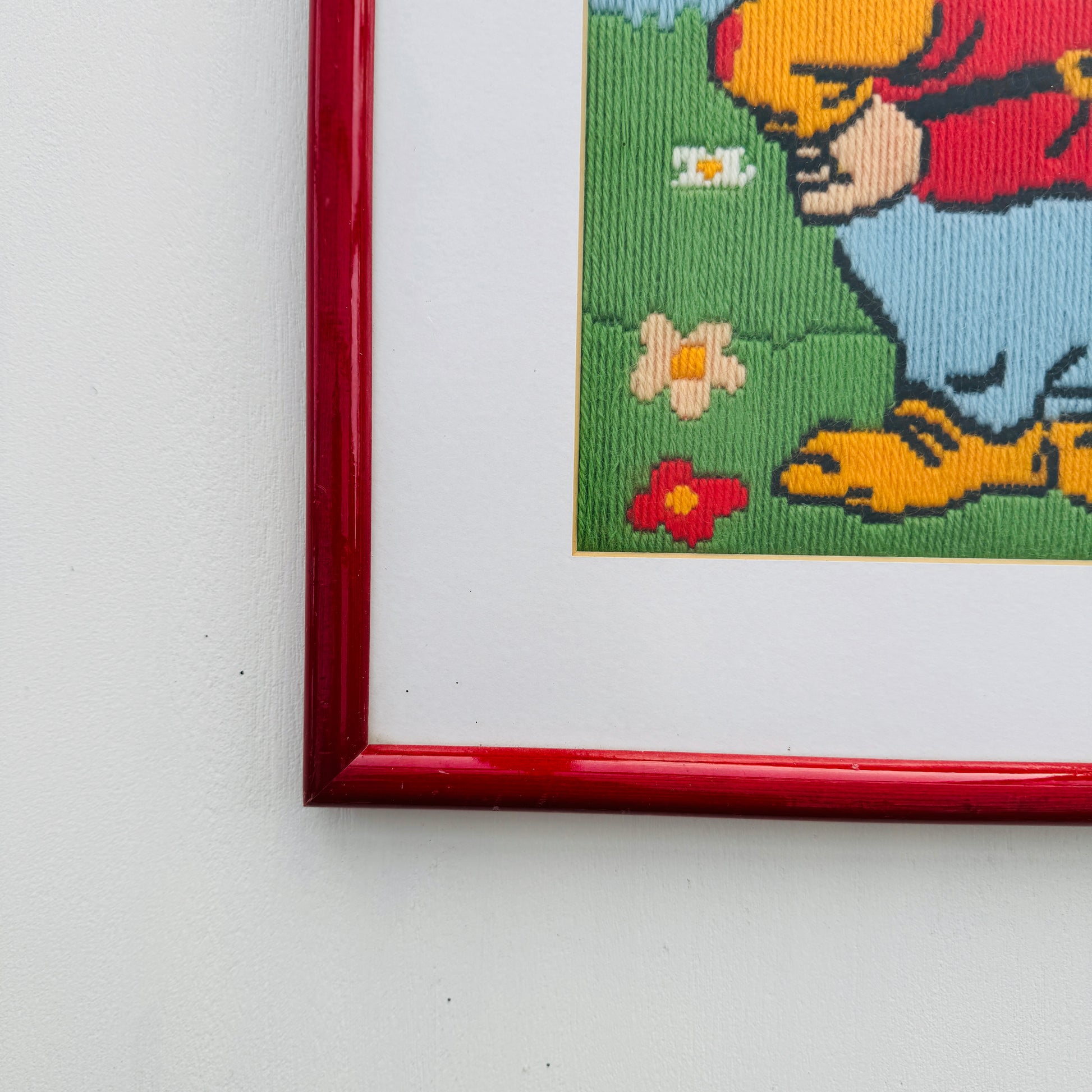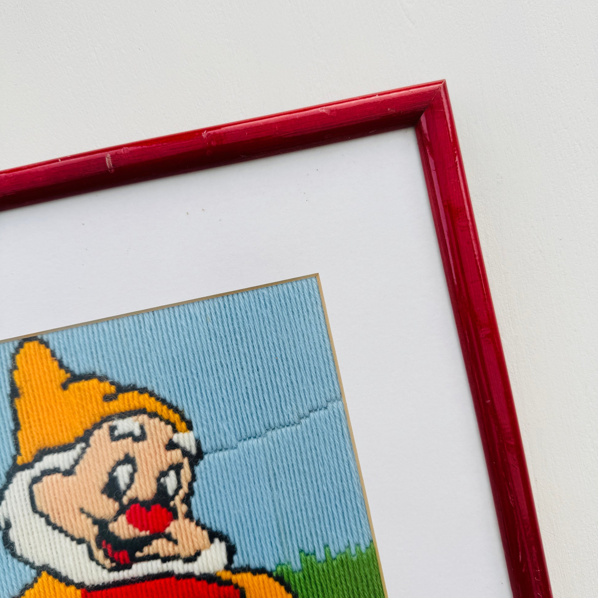 Té leuke kader om de muur in de speel- of kinderkamer mee te pimpen! Het borduurwerkje toont een kabouter in lekker fleurige kleuren. Vakkundig ingekaderd in een gelakt houten frame.