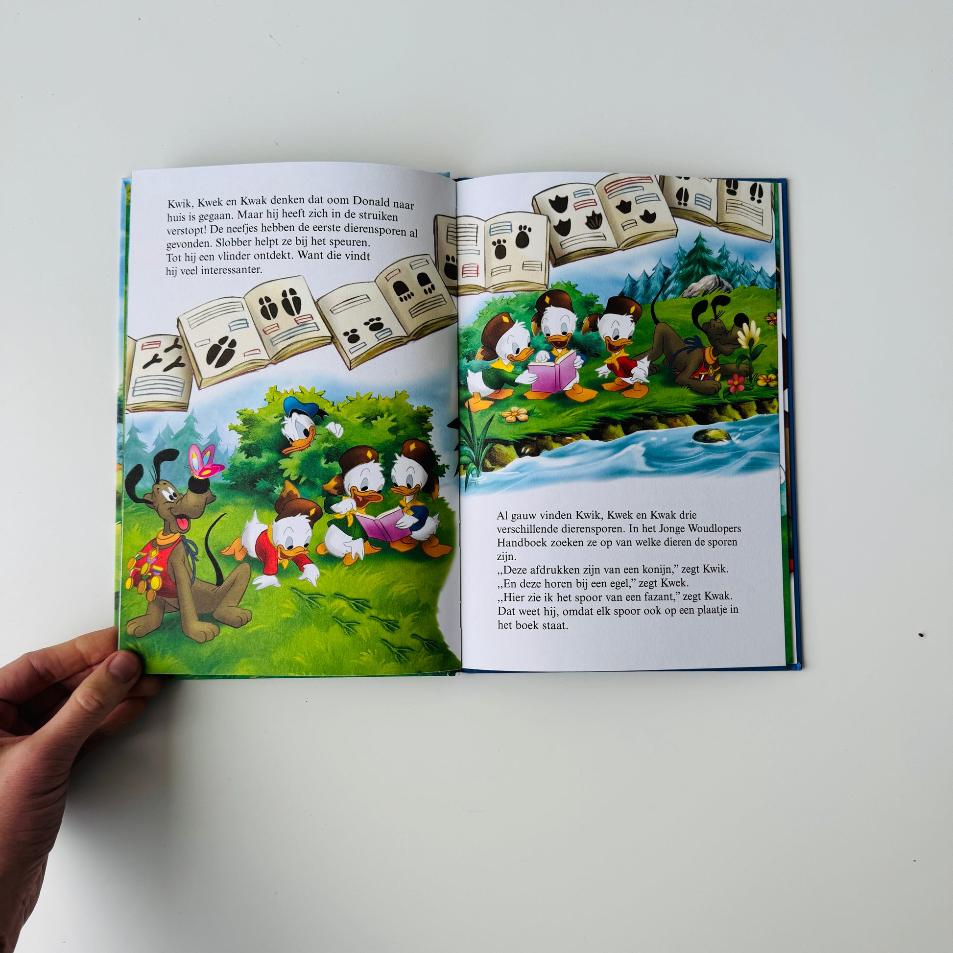 Een tof kinderboekje uit de Walt Disney reeks 'Disney Boekenclub': Kwik, Kwek en Kwak als spoorzoekers.
