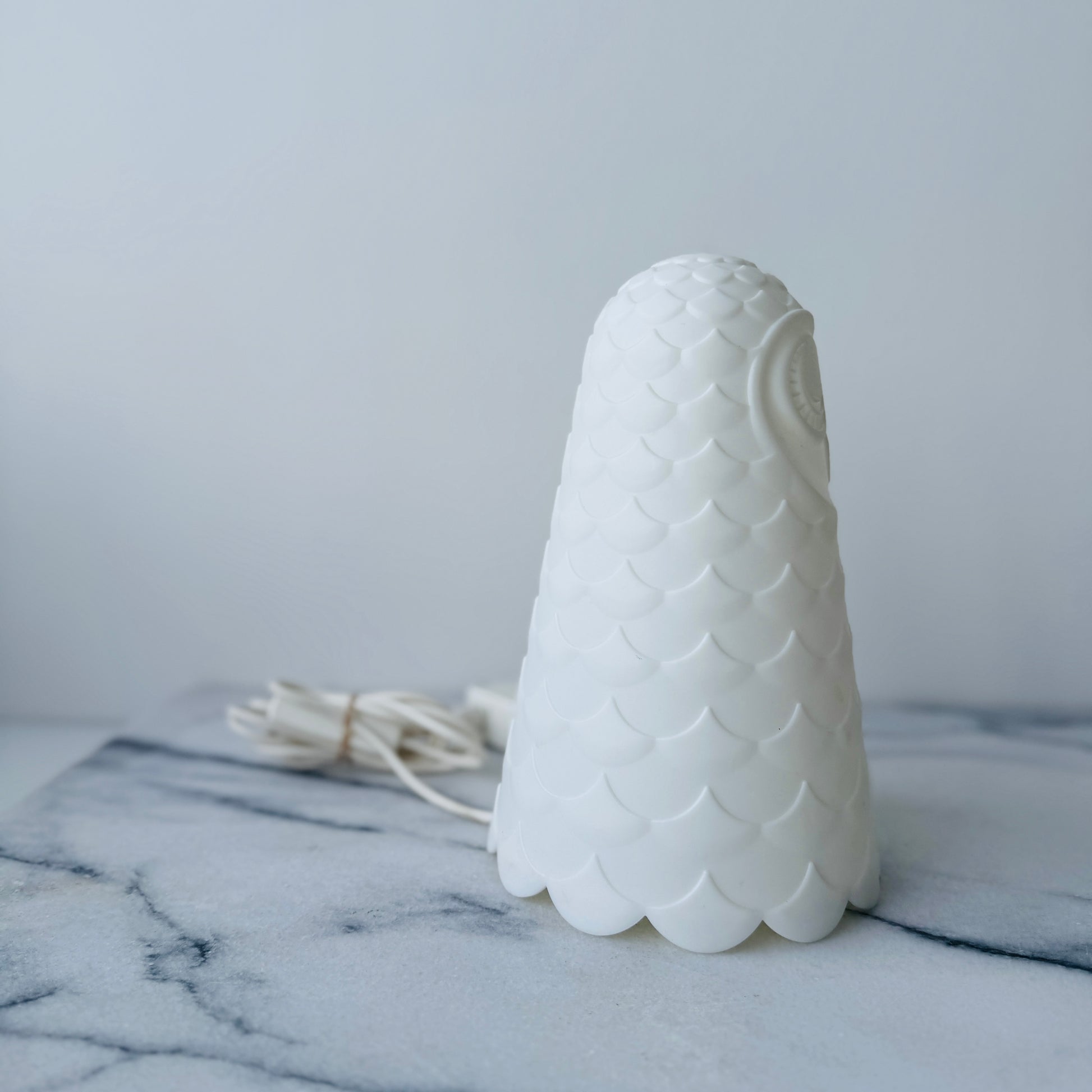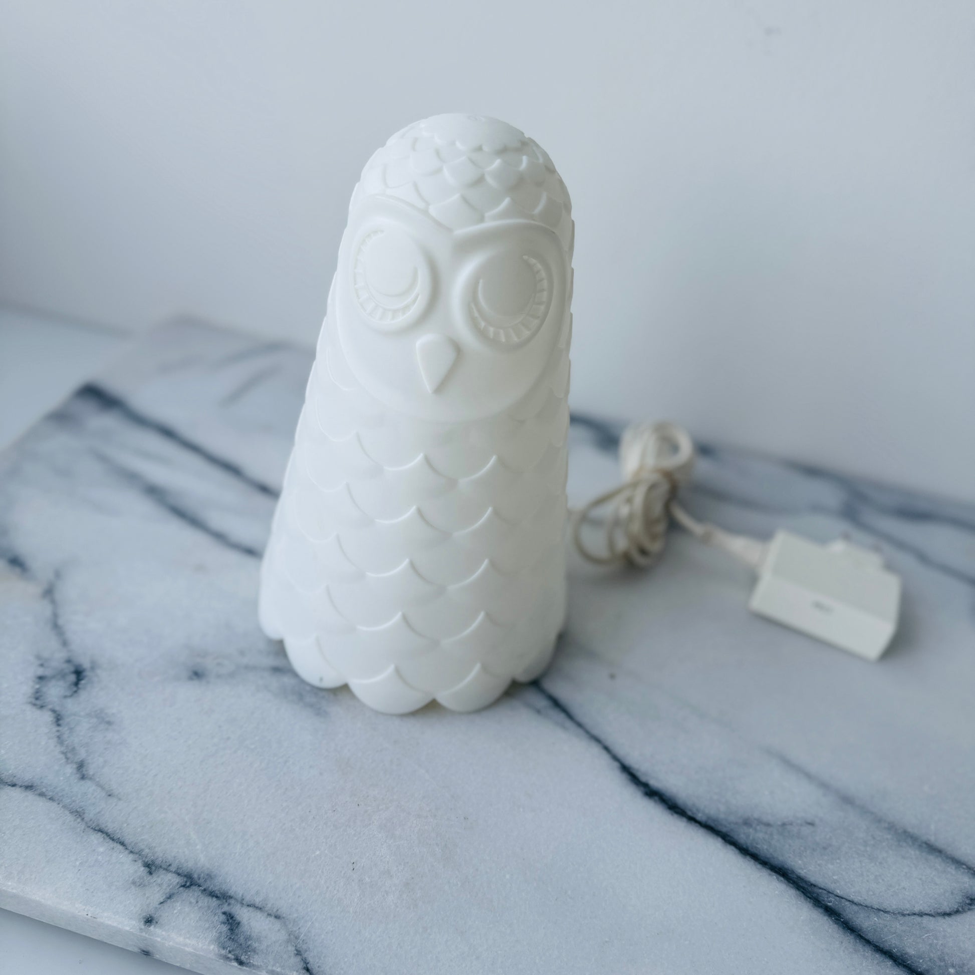 Nachtlampje uil naar ontwerp van Henrik Preutz voor Ikea. De lamp geeft een zacht en warm licht en is voorzien van een snoer met schakelaar.