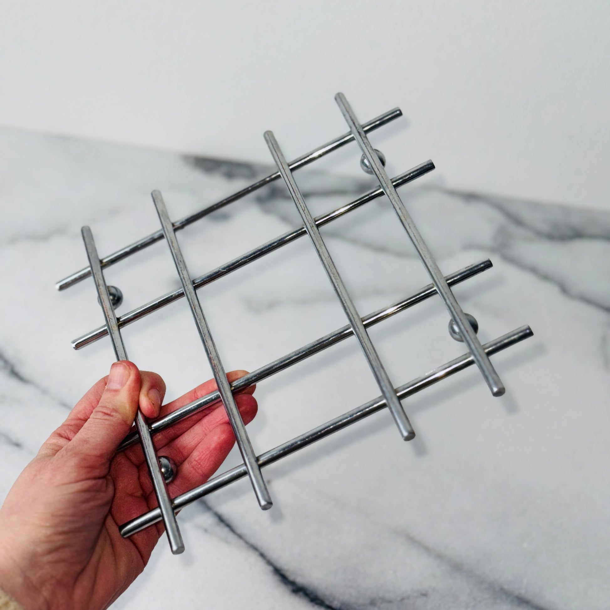 Prachtige mesh pottenlegger in chroom! Mooie staat en vooral een super handig en tegelijk esthetisch cadeau 😉!