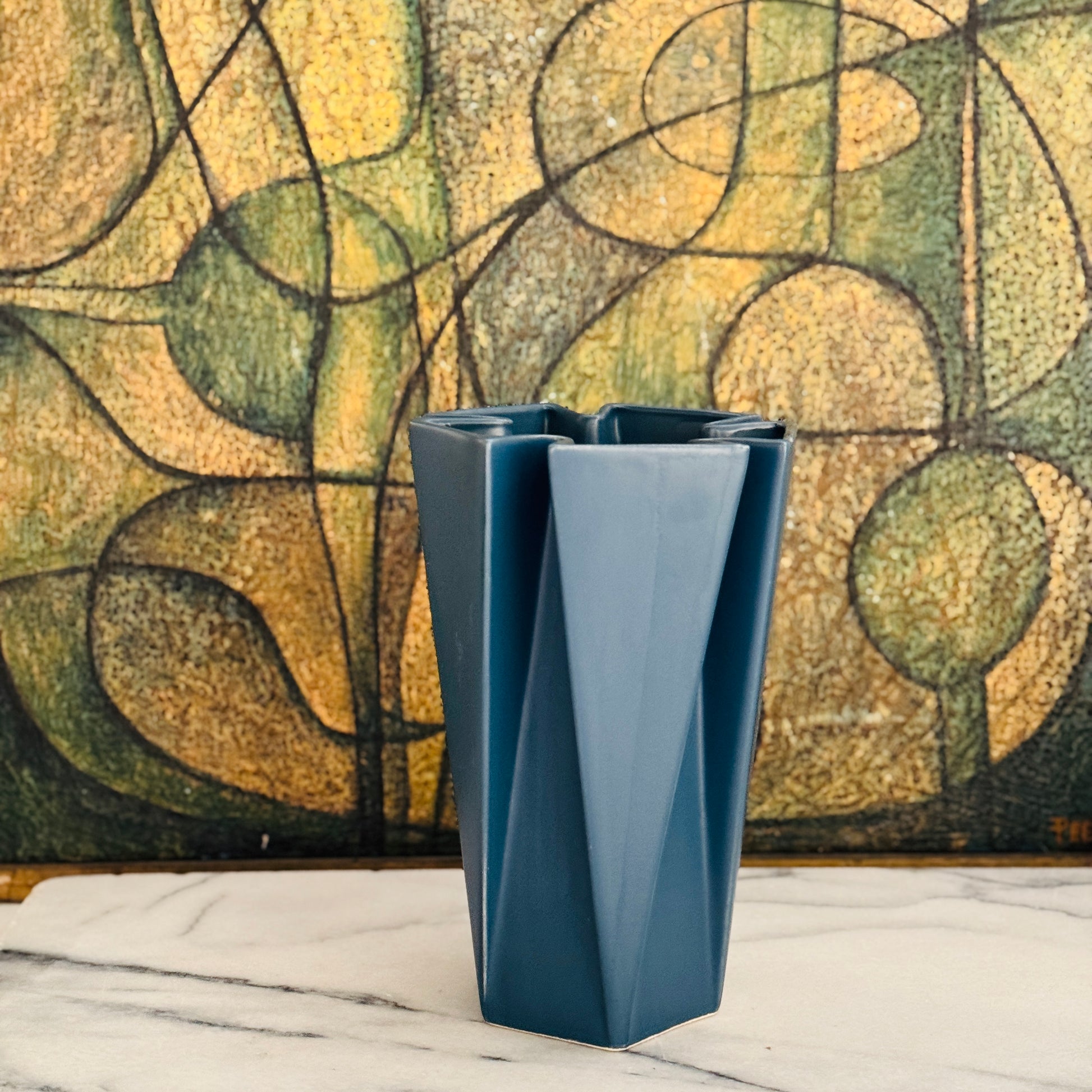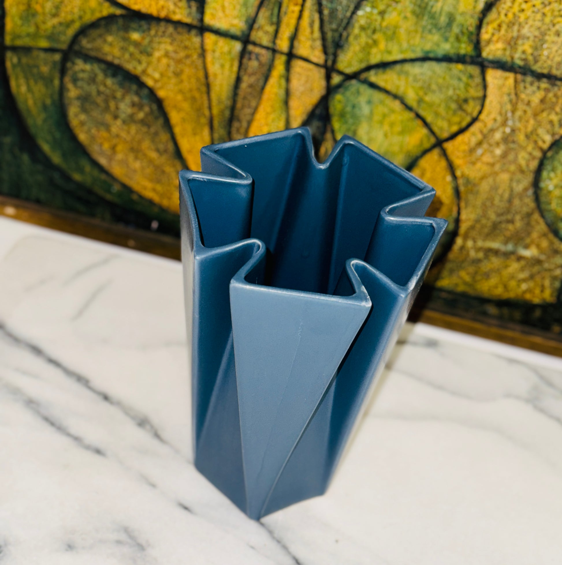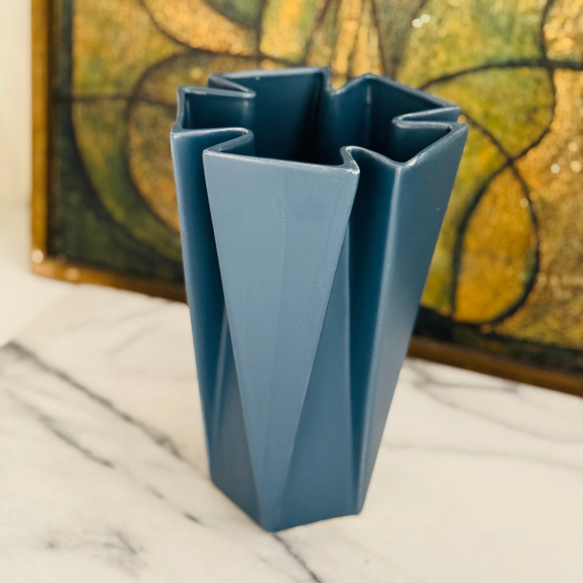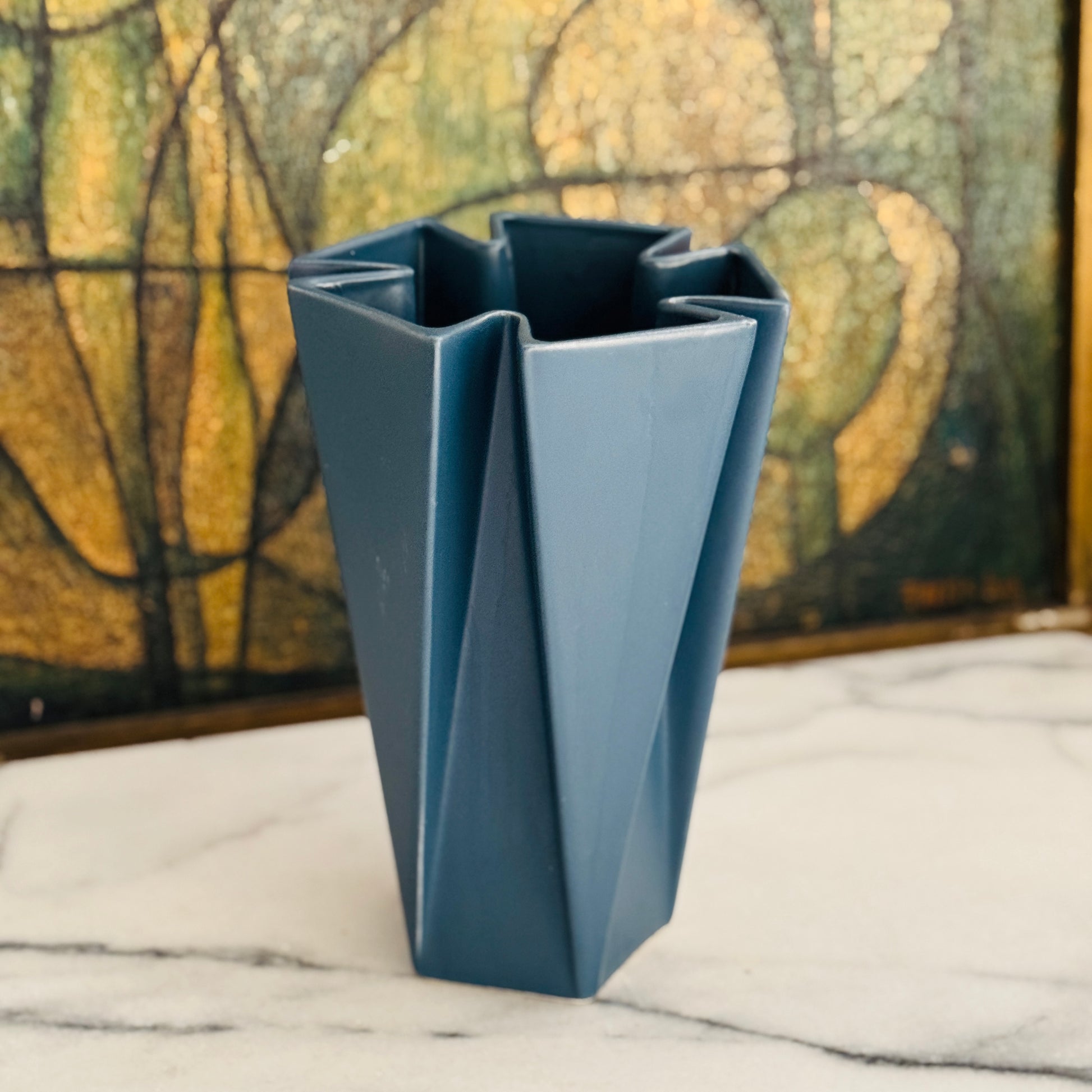 Prachtige keramieken vaas in origami stijl. Glazuur verkeert in mooie staat met enkele lichtere zones op de rand bovenaan.