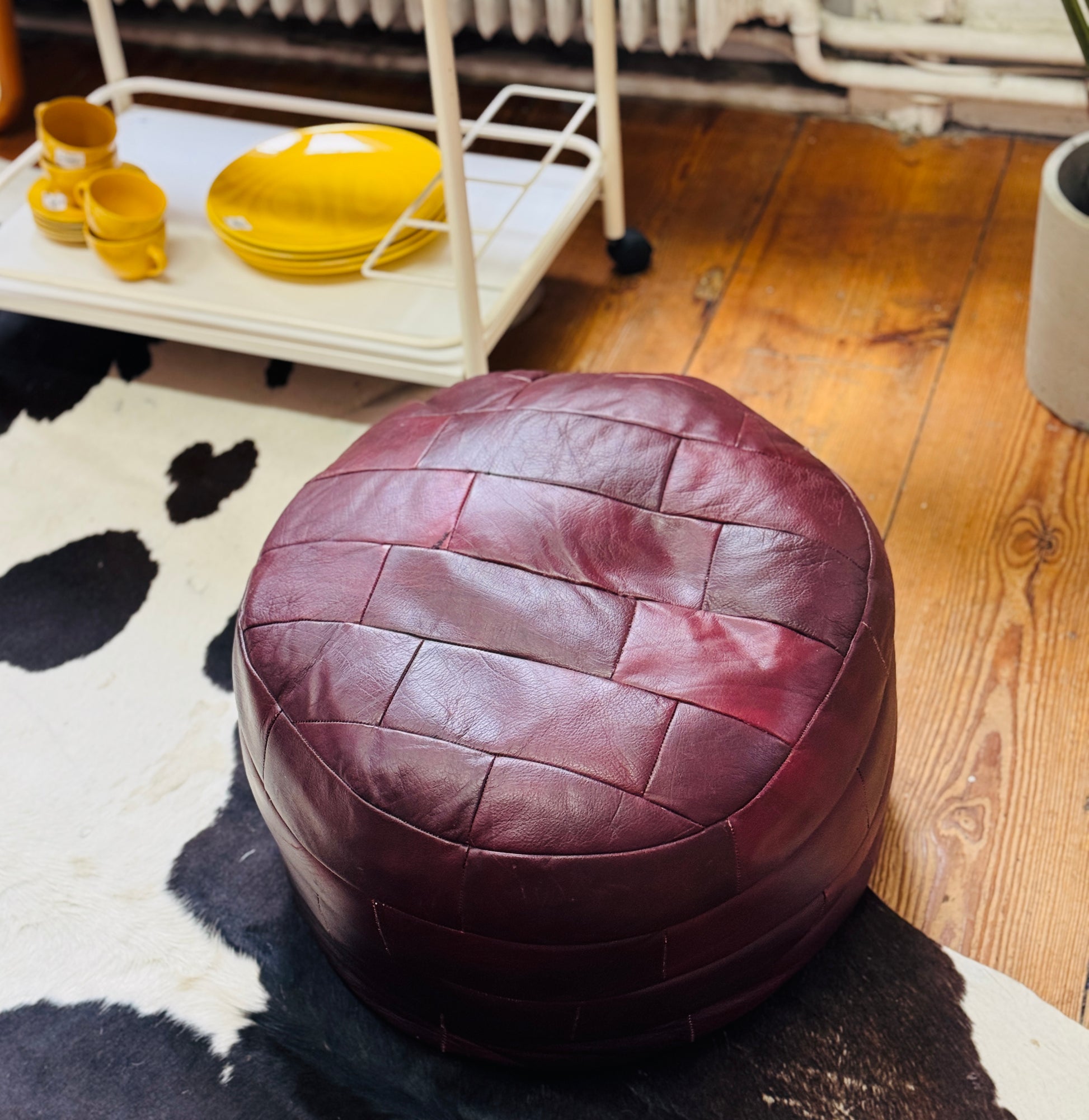 Deze burgundy patchwork poef is a dreammm! Verliefd op de bordeauxrode kleur oh my 😍! De poef is bovenaan op 1 plekje genaaid. Verder zijn er enkele krasjes op de zijkant wat de poef een mooie patine geeft. Wie oh wie heeft een plekje vrij voor deze beauté!?