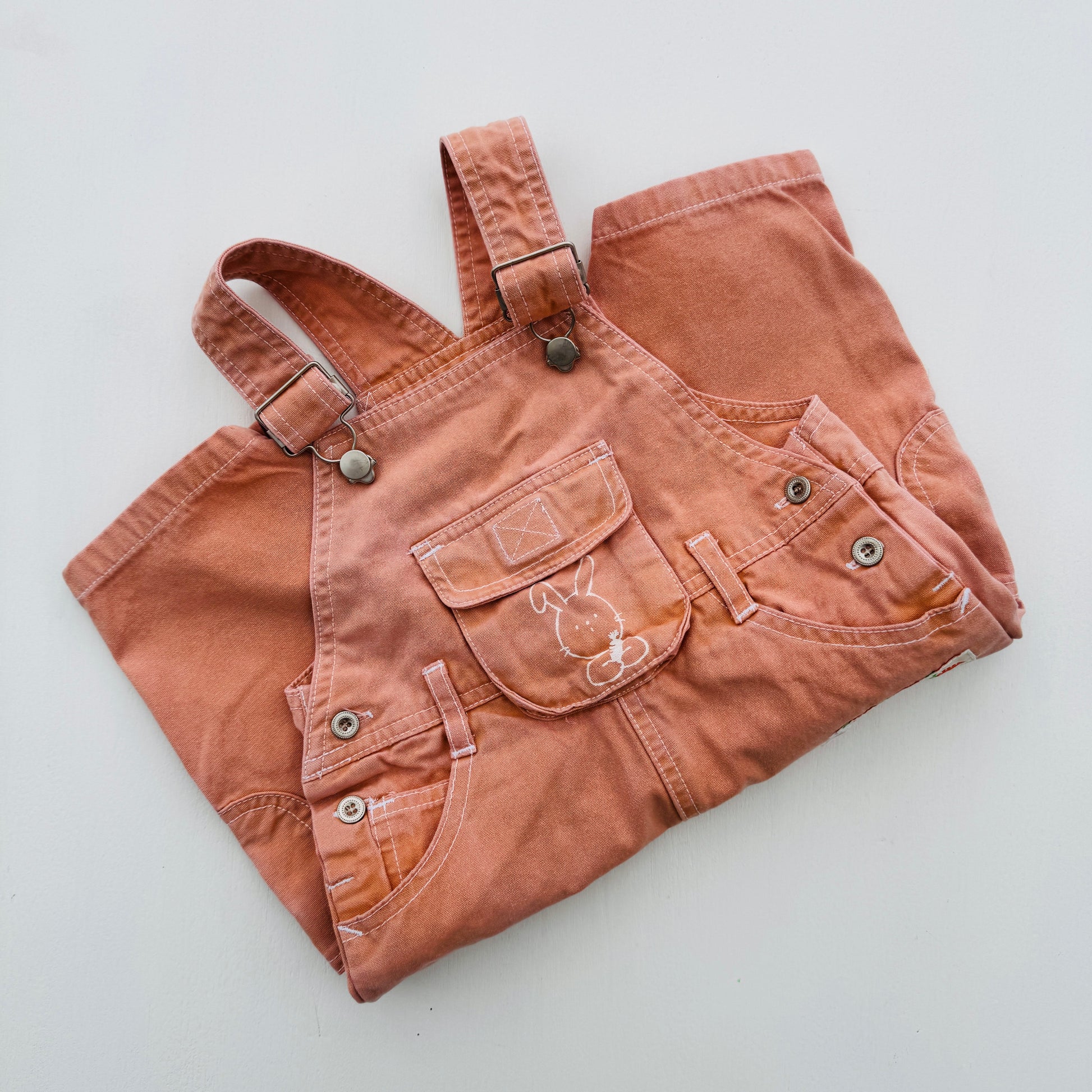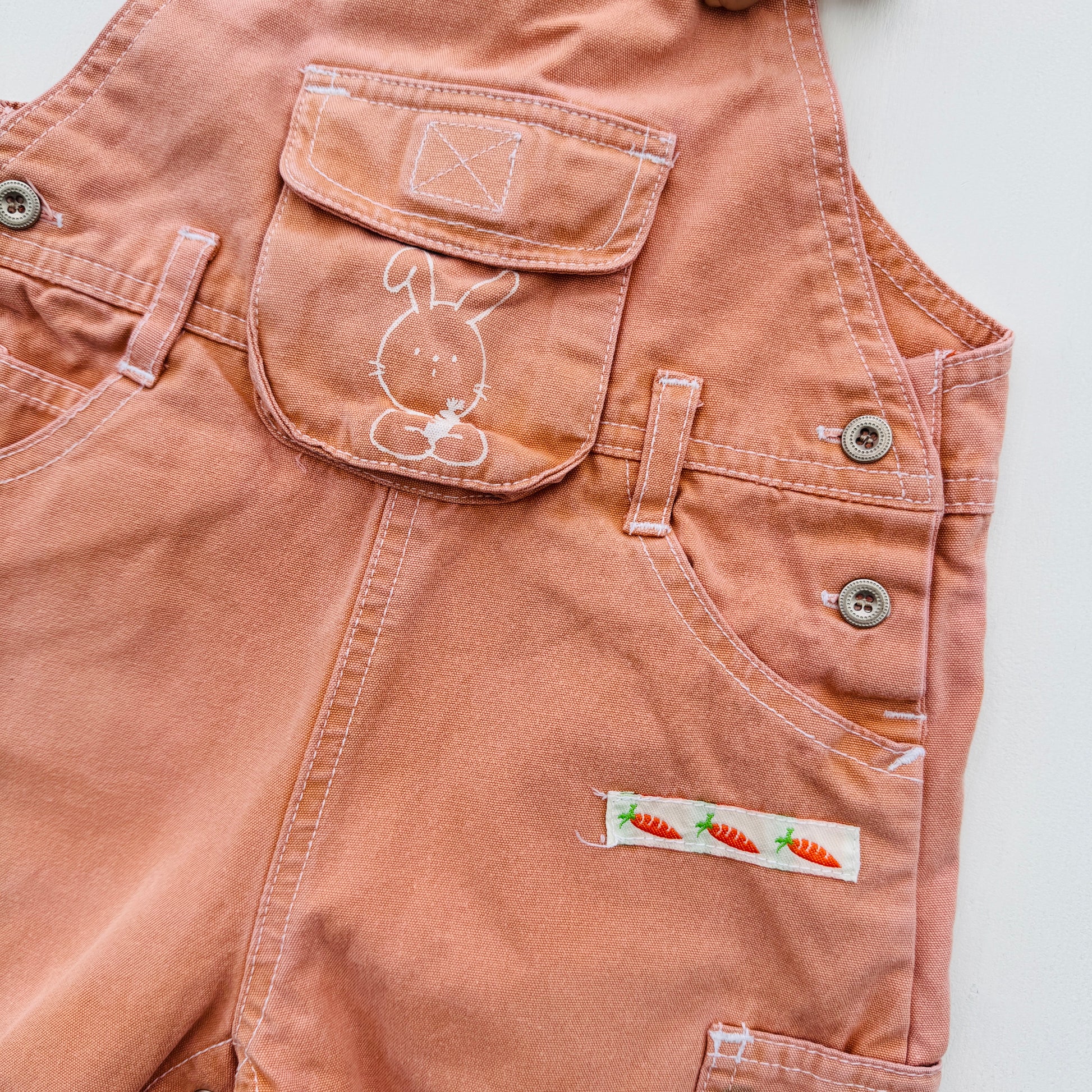Zalmroze salopette met schattig konijntje