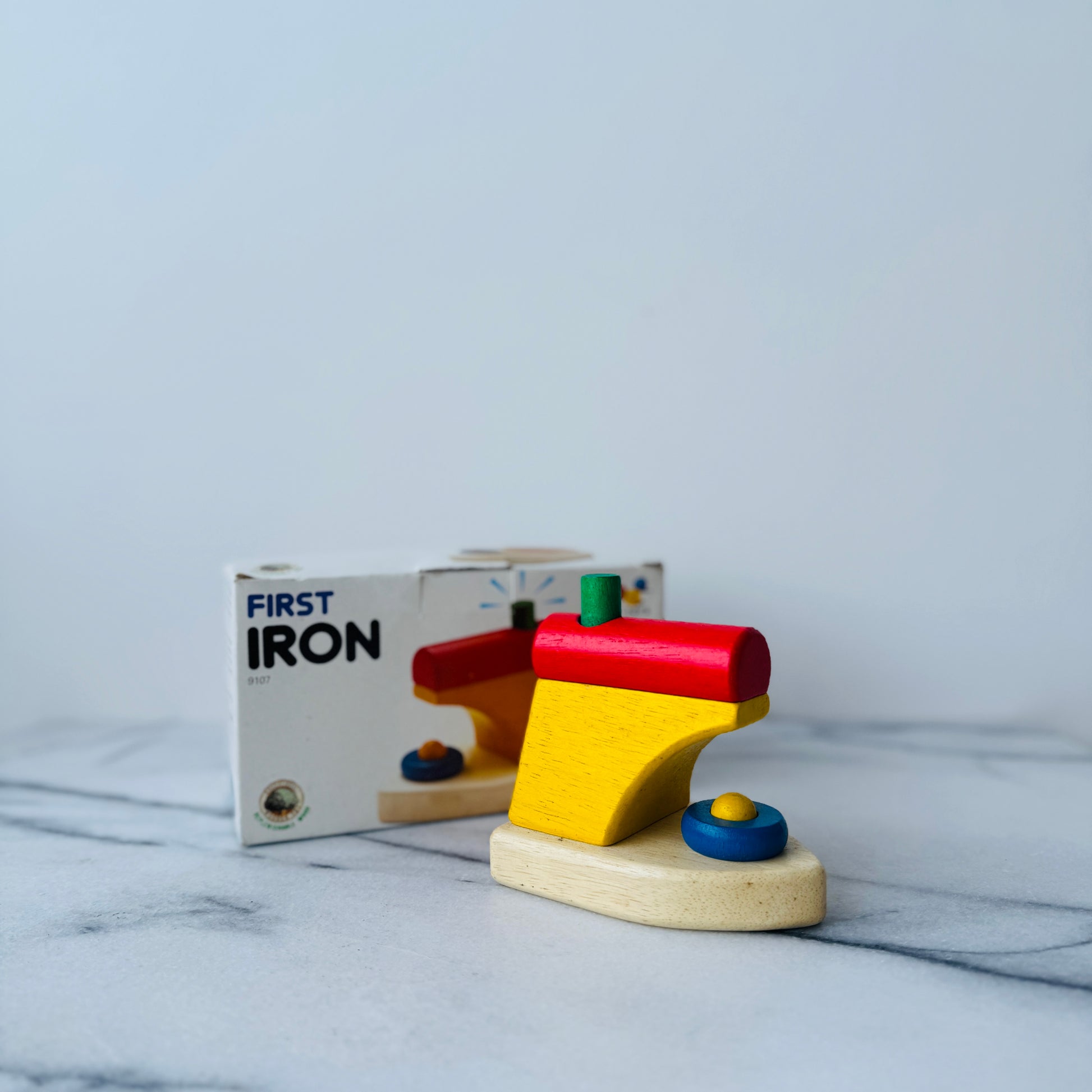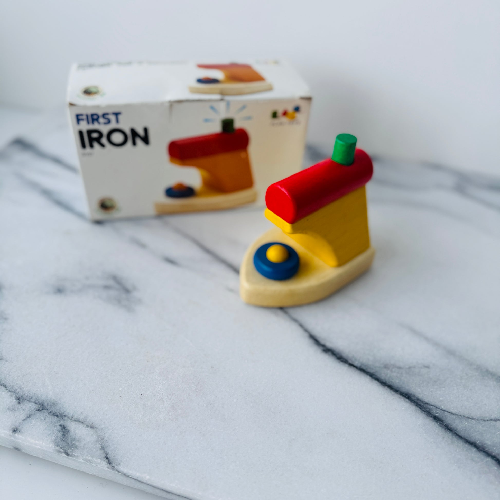 Houten strijkijzer van Plantoys. Het strijkijzer komt in de originele verpakking. Cuteee!