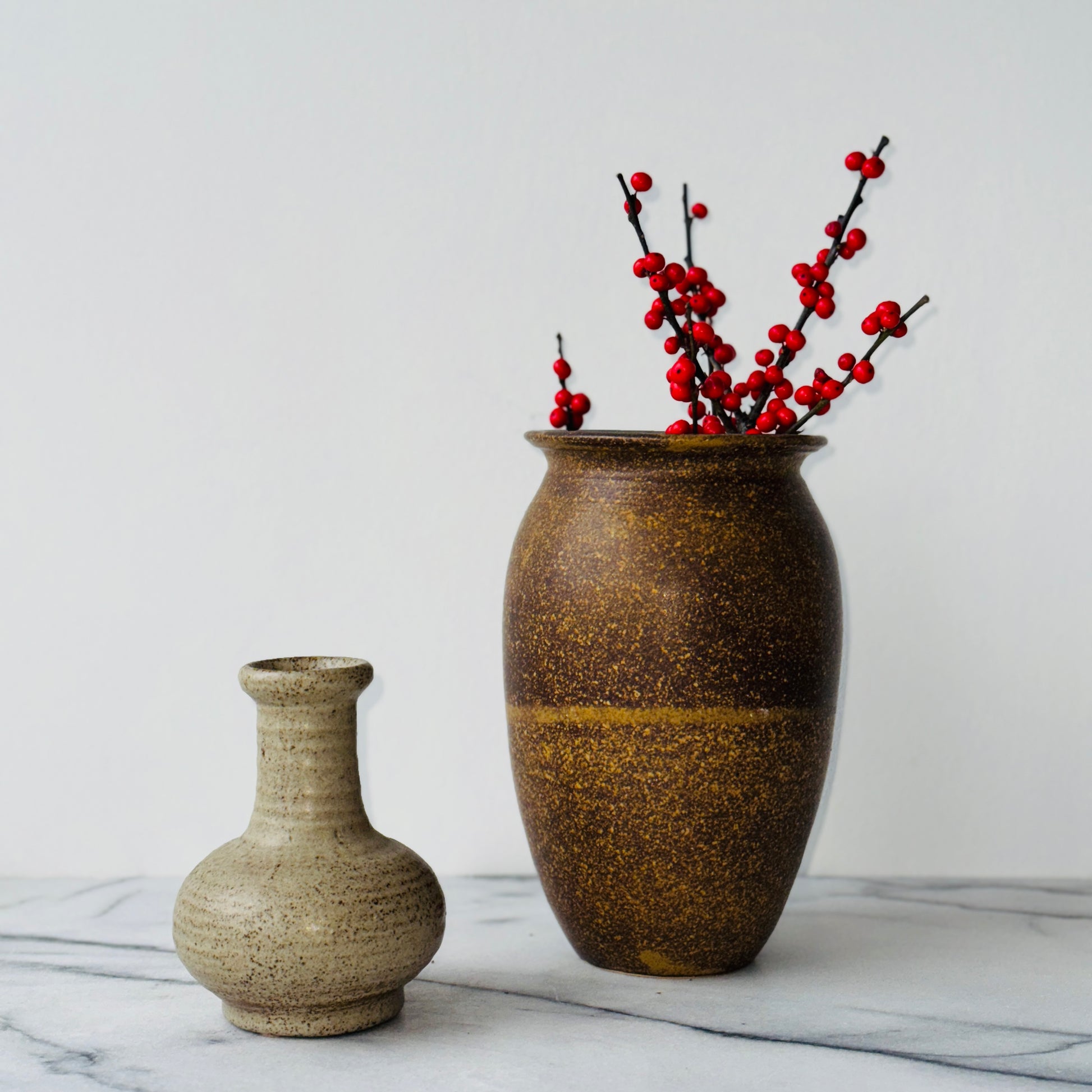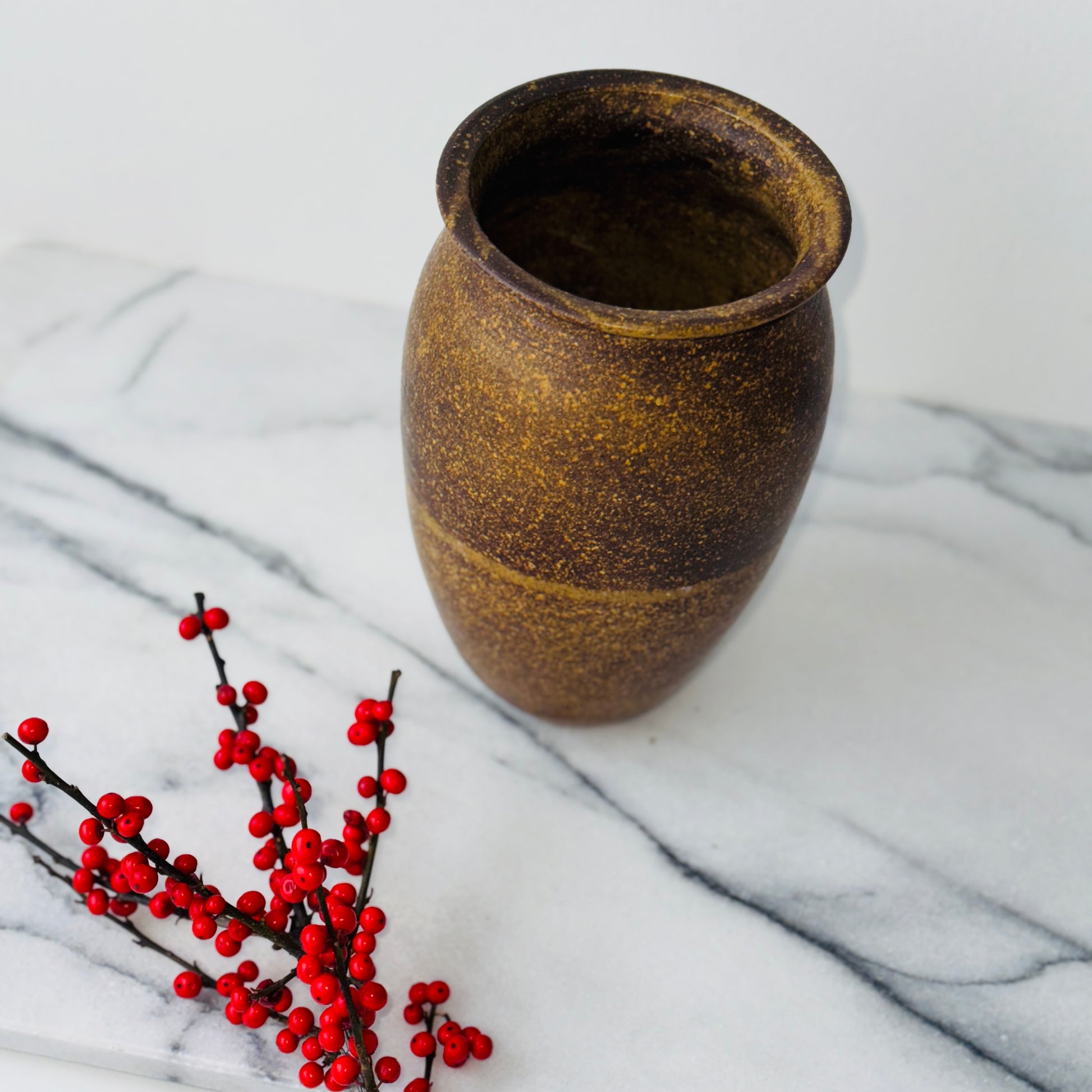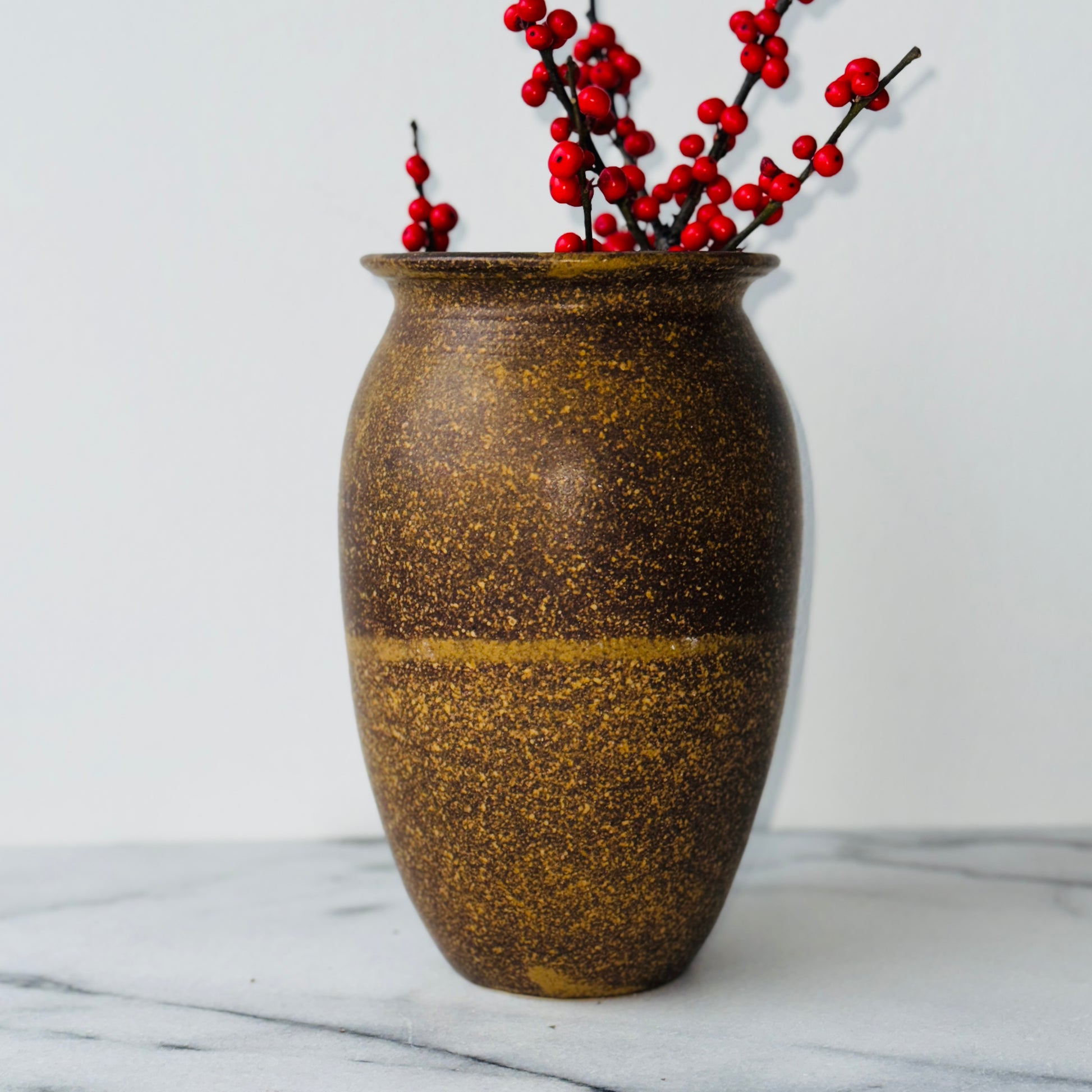 Prachtige vaas in een bruin gespikkeld aardewerk. Ideale tijdloze toets voor je interieur.