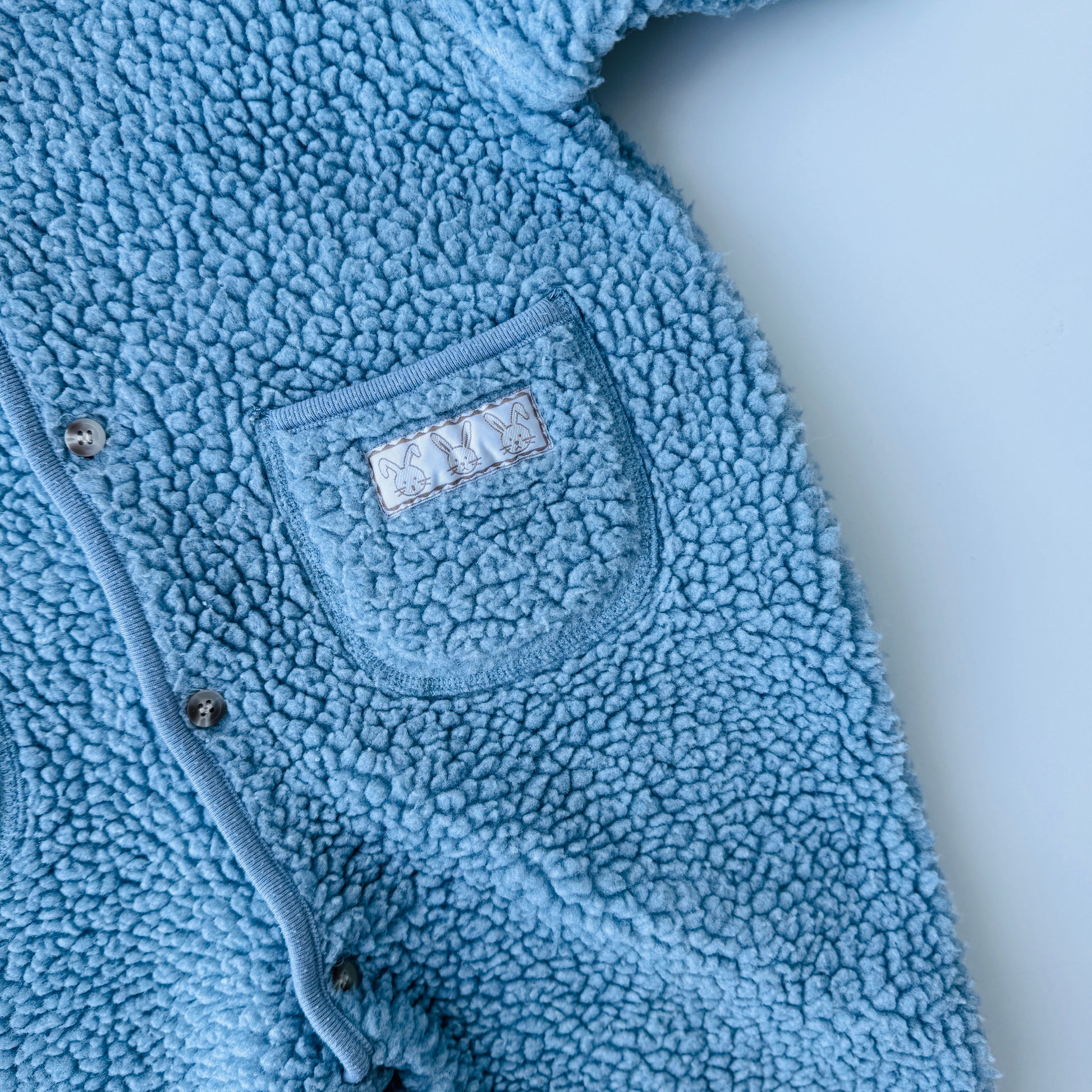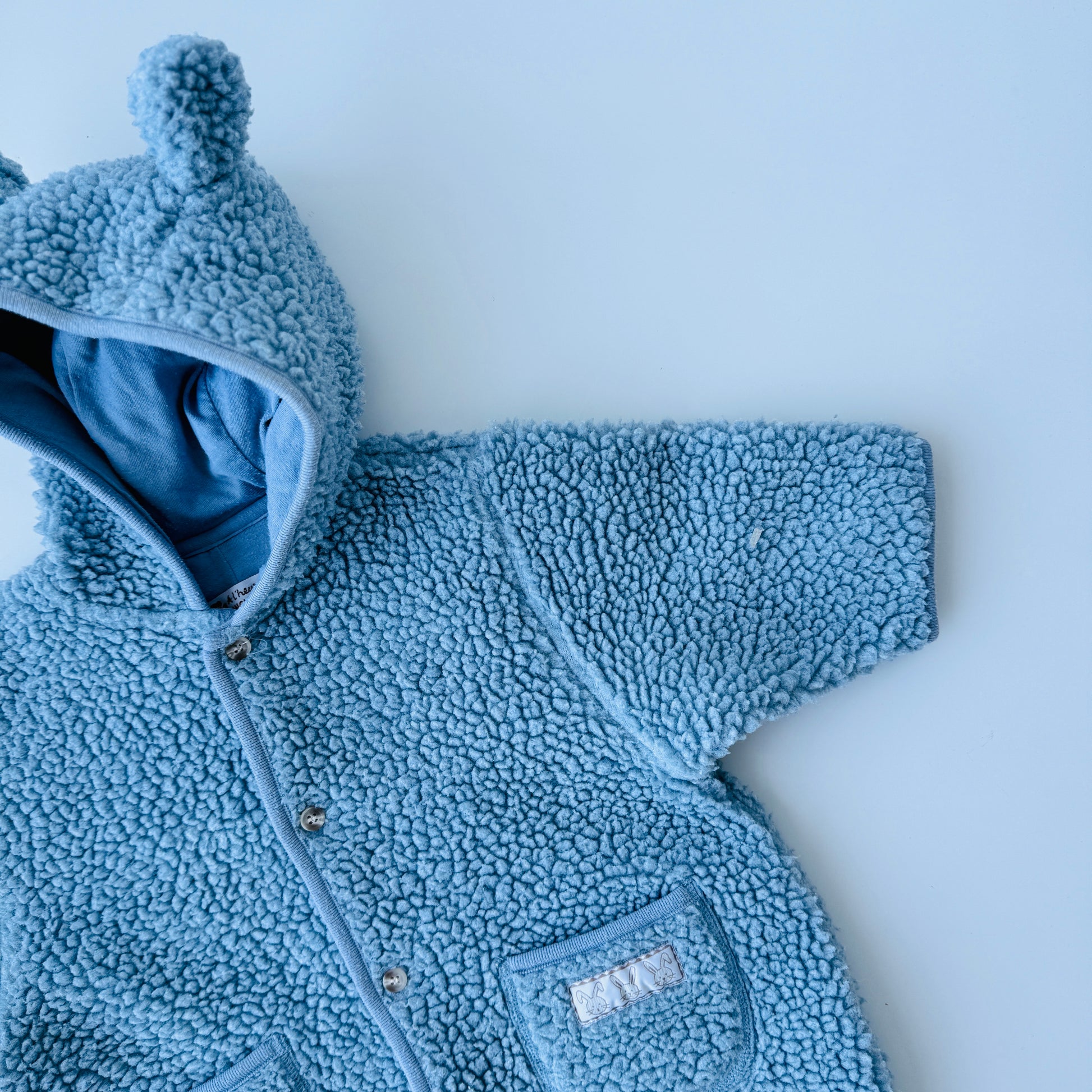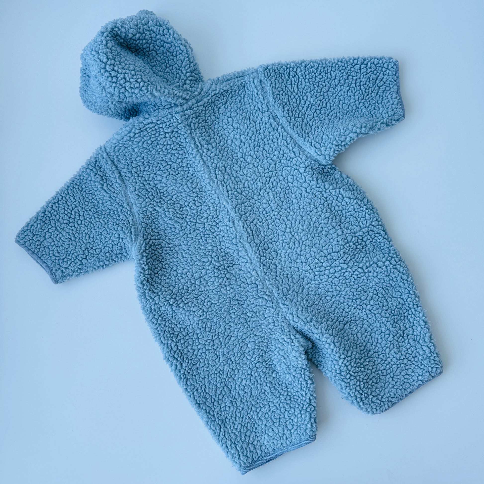 Te schattig winterpak in lichtblauw teddy. De kap is voorzien van oortjes 😍!